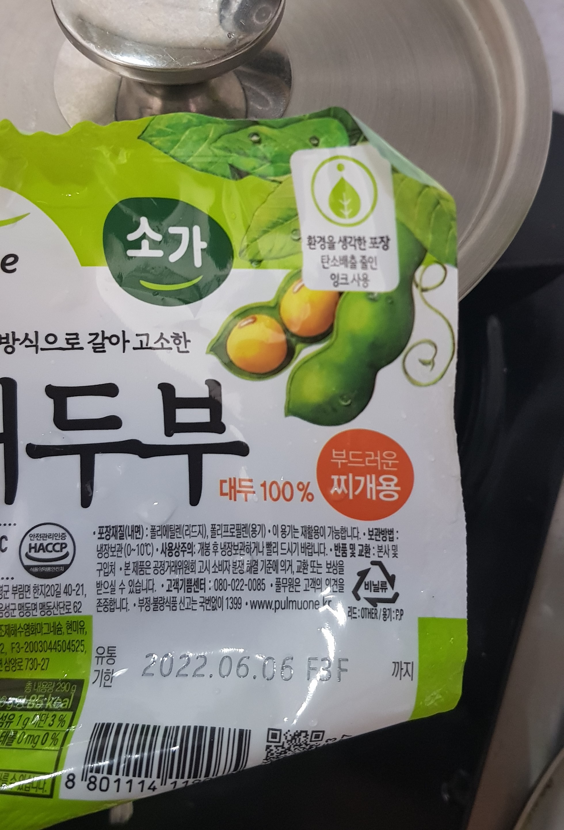 한 달 전 냉장실에 넣어 두었던 두부의 유통기한이 6월 6일까지였다.
