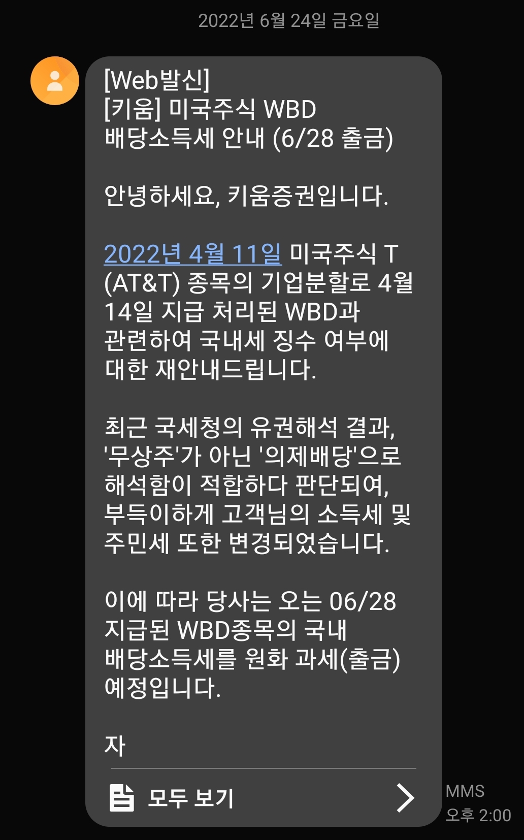 기재부의 최종판단은 '의제배당'이었고, 몇 주 전부터 출금을 예고하는 증권사 문자가 정기적으로 도착하더니, 결국 어제 오후 출금이 완료되었다.